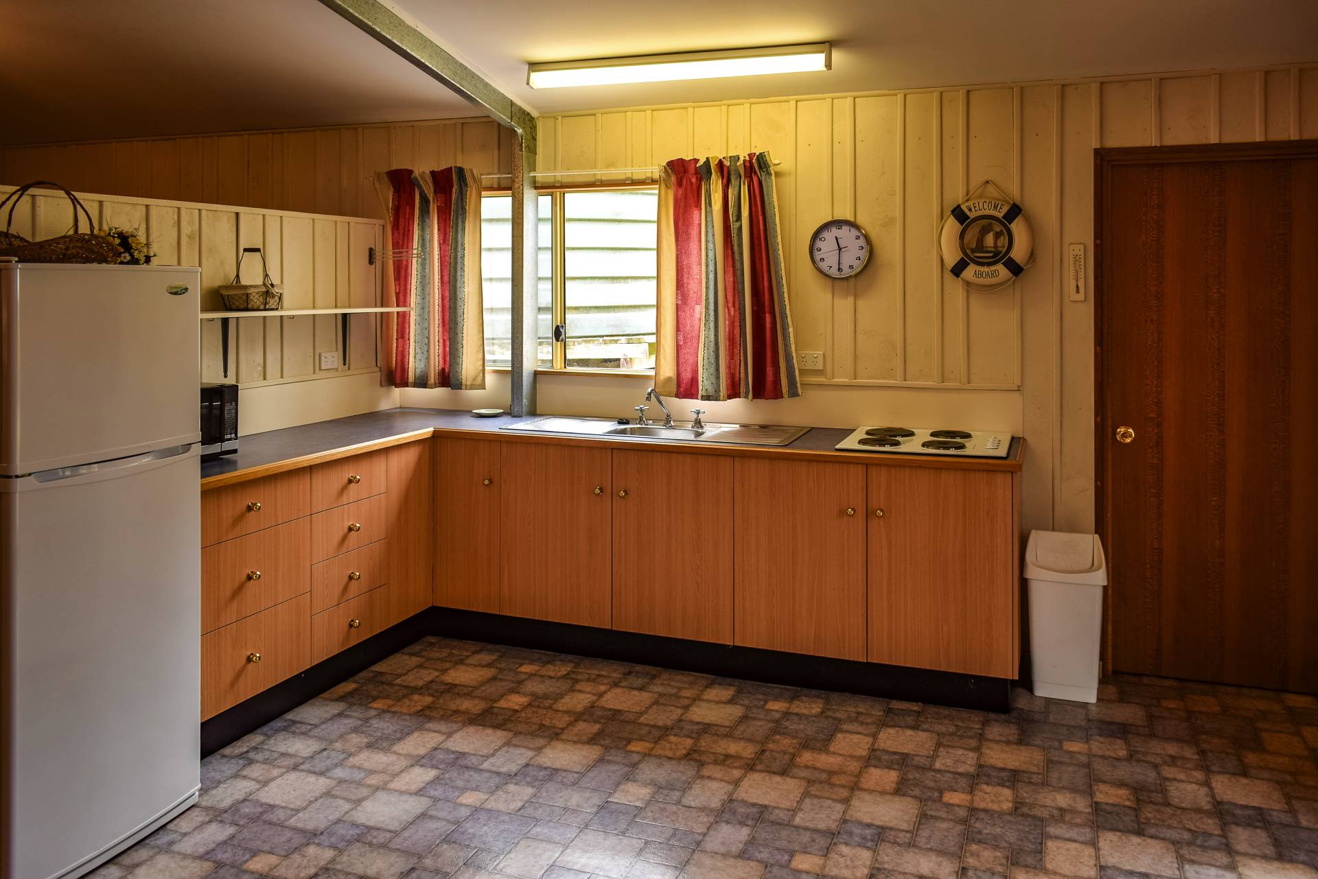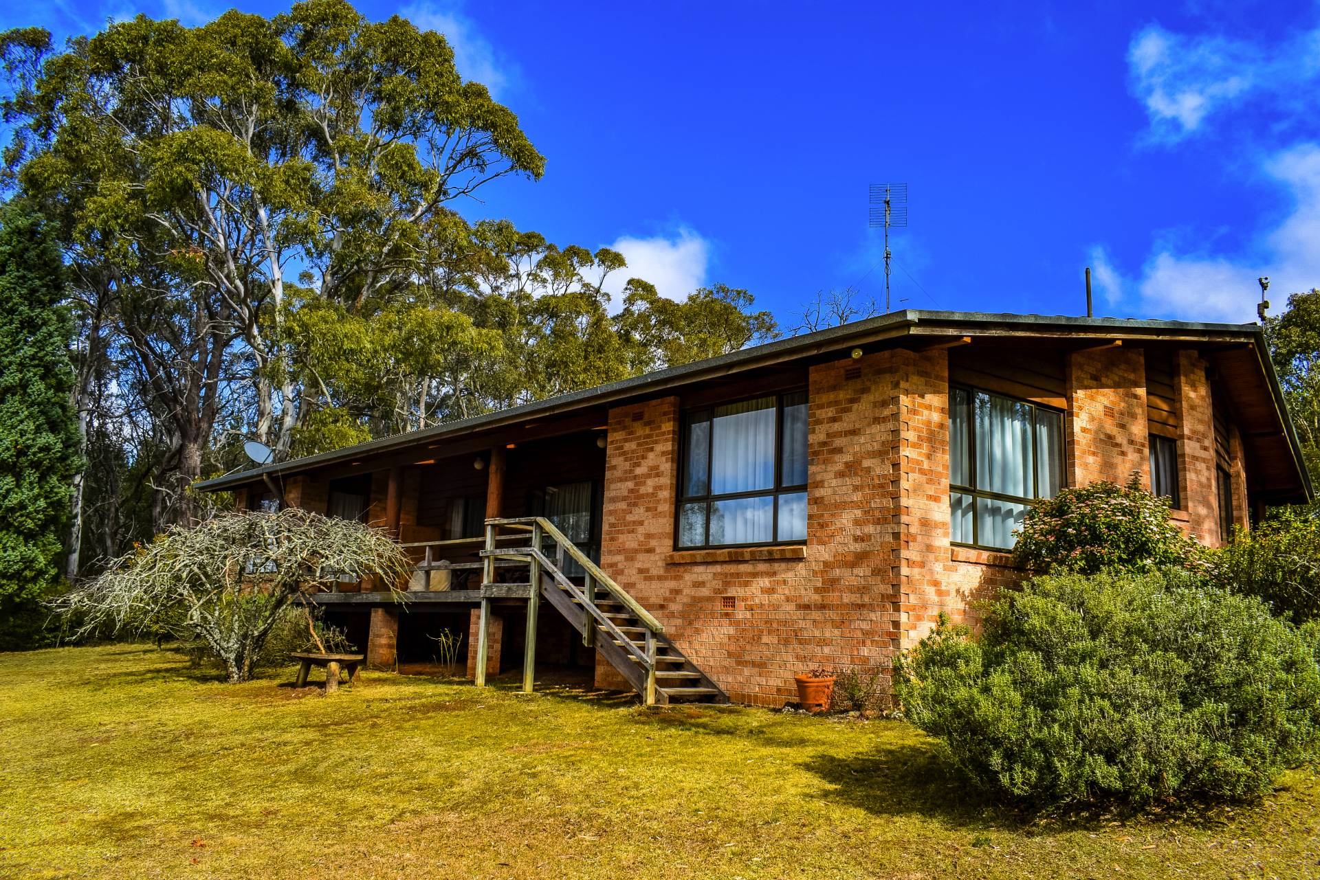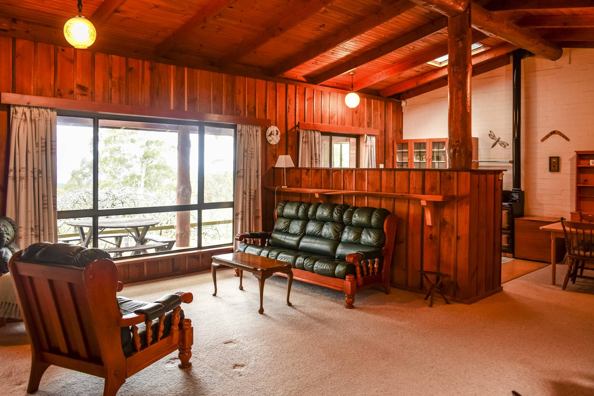 The home has a timber kitchen with electric cook top and timber fuelled Rayburn slow combustion stove. The stove warms the home as well as hot water in winter months. A slow combustion wood heater at the opposing end of the living area amply contributes to heating also. The home includes a bathroom, ensuite and store with all services including electric hot water, bottled gas (for extra heating) and large underground 20,000 gal. concrete rainwater tank. Additional 2400 gal. poly tanks collect water from the cement floor large double workshop and garage give the home and cottage an extra large water capacity.