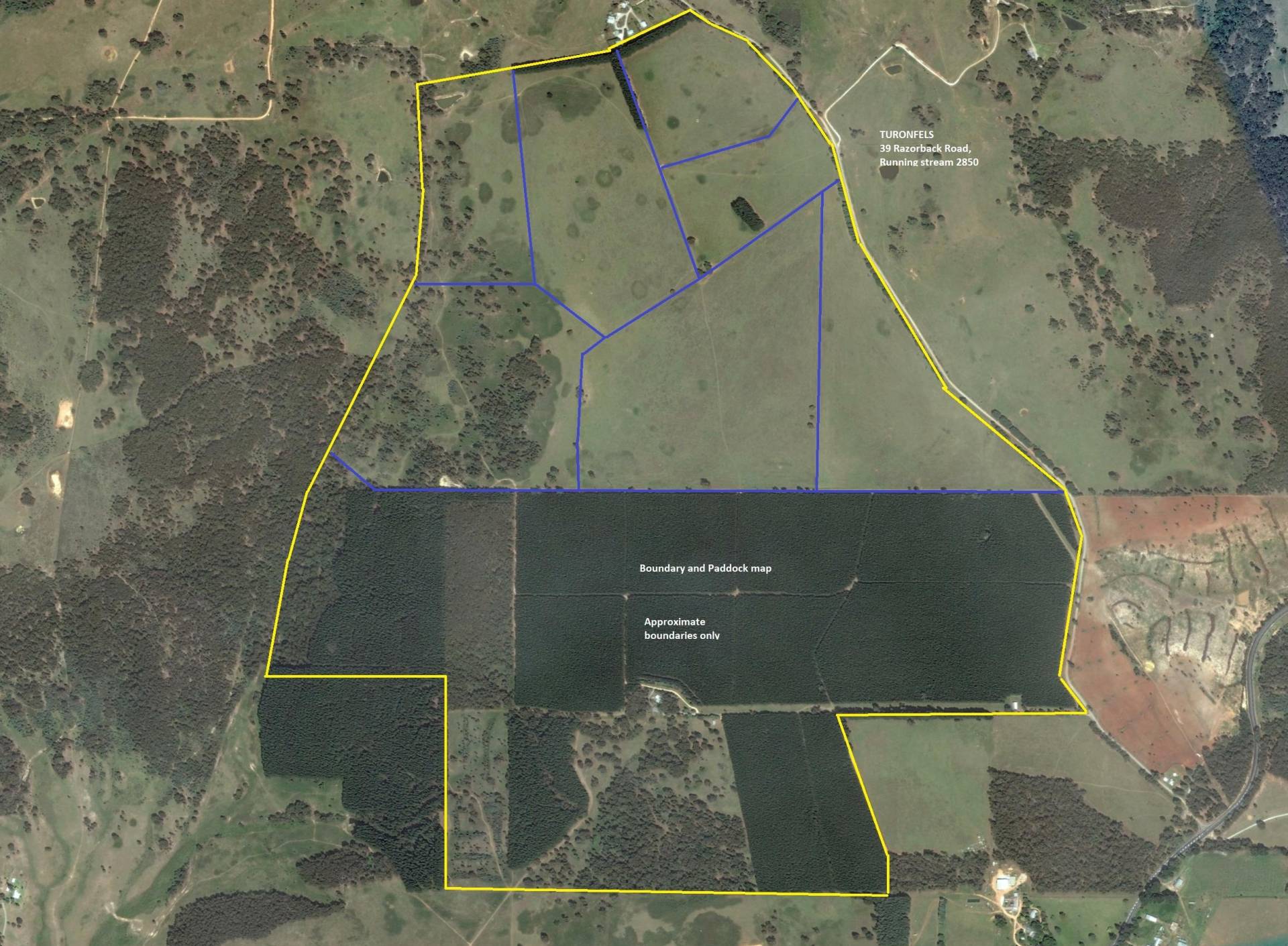 TURONFELS is a diverse agricultural property incorporating approx. 266 acres of Radiata Pine plantation. Most stands average 18 years old, while some stands over 40 years old and harvestable with mostly excellent road access. The balance of approx 538 acres being principally arable open cleared grazing land. The grazing land is fenced into 7 main paddocks. Soil types range from heavy red clay loams to red basalt. Pastures are mostly native grasses including Microleana. The licensed bore is pumped by a Southern Cross windmill to concrete header tanks and reticulated to troughs for stock water. There is also 2 Dams on farm. TURONFELS has had an average rainfall of 797.6 mm (31.88 inches) over the past 18 years recorded by vendors.