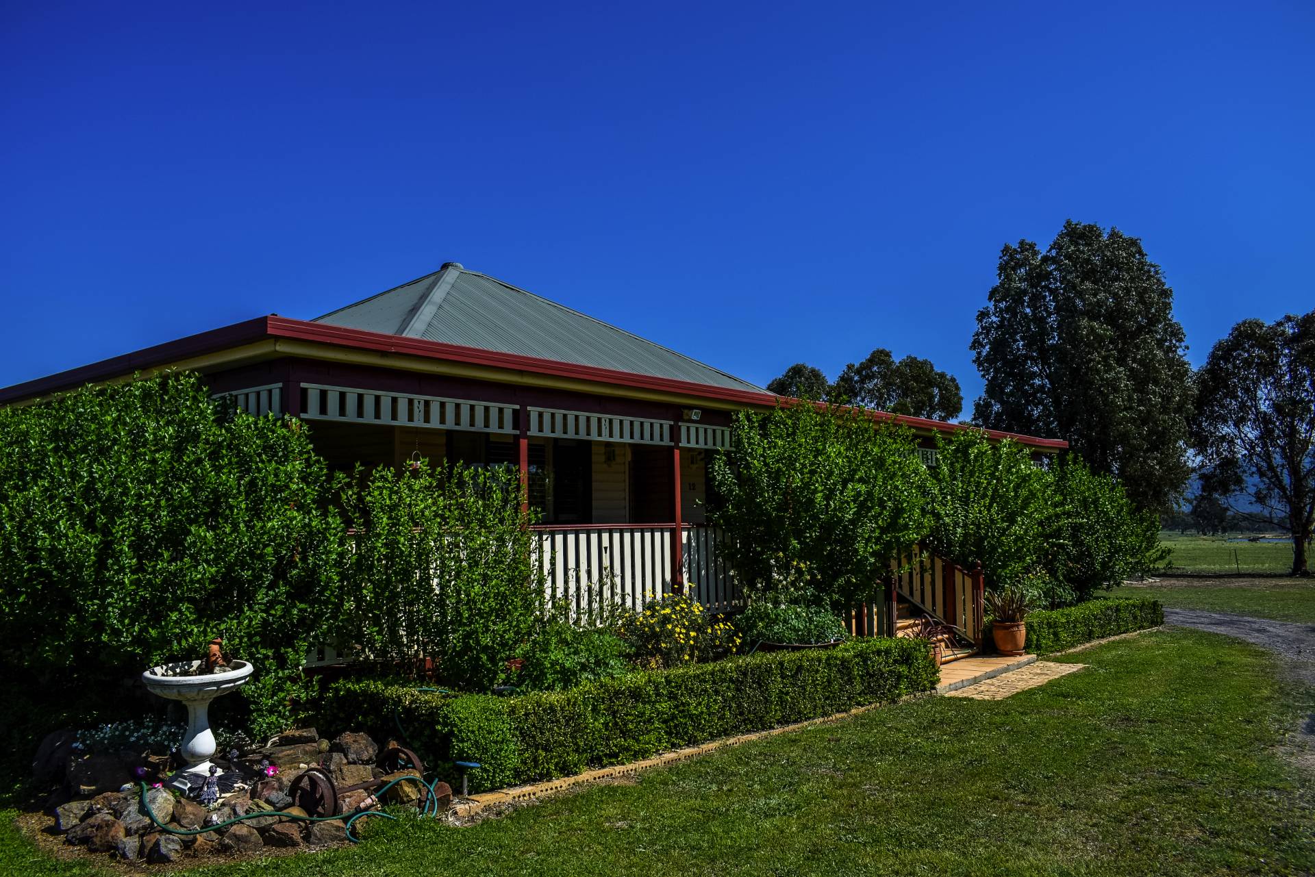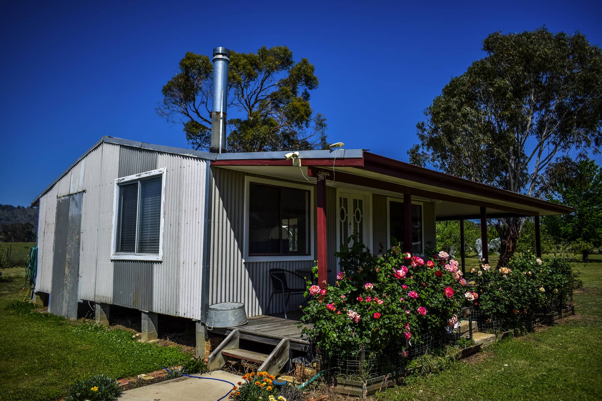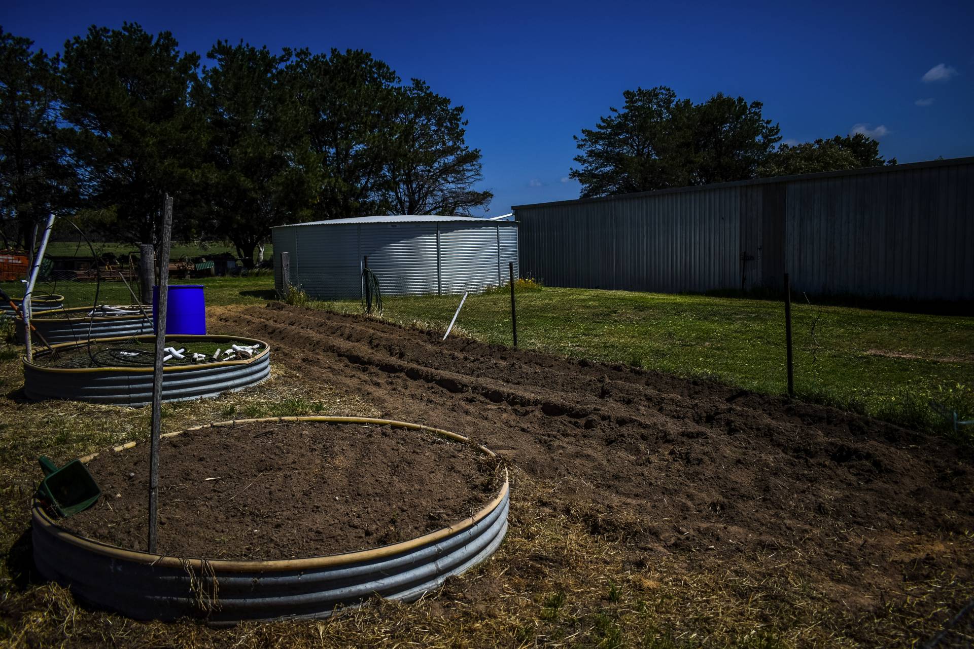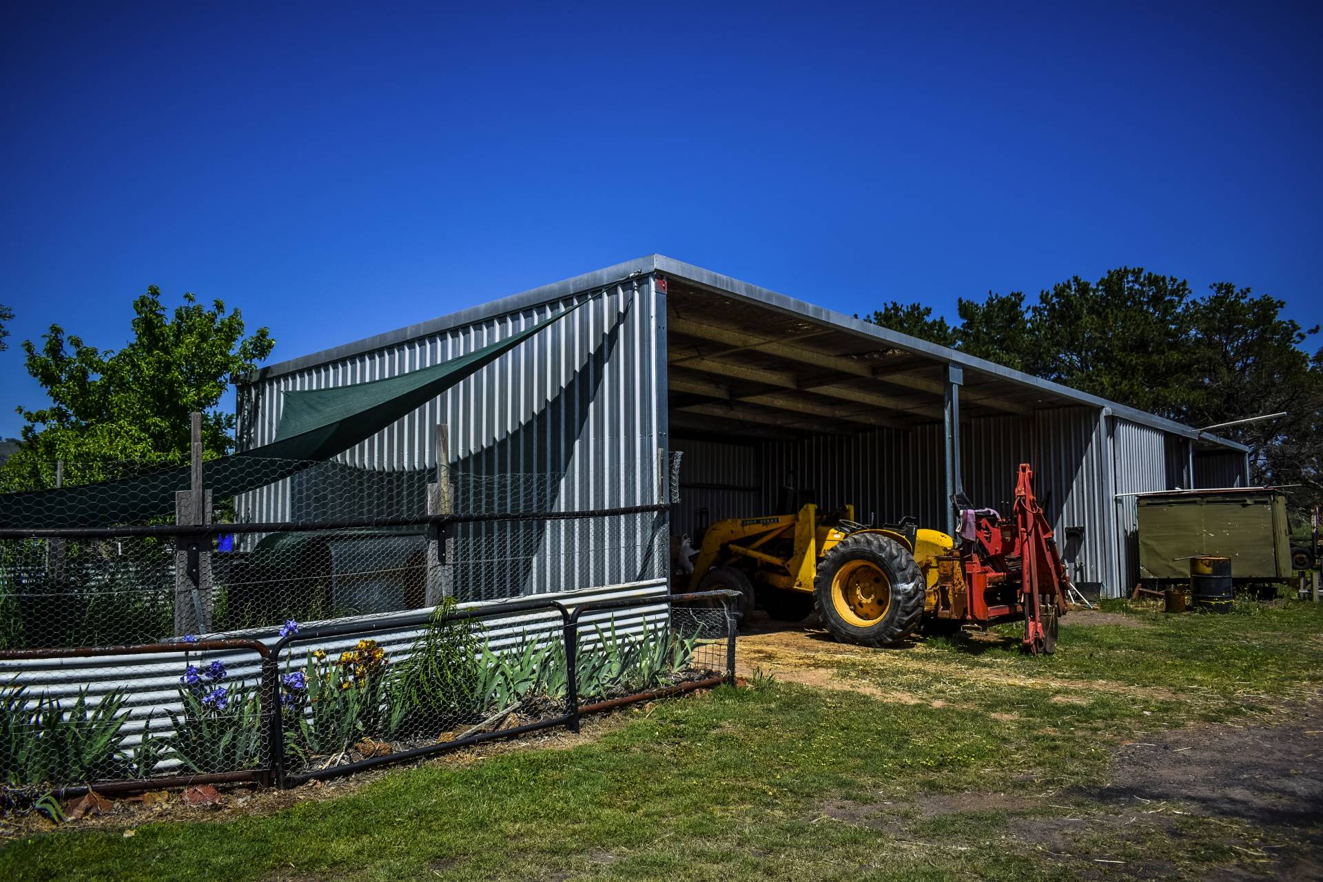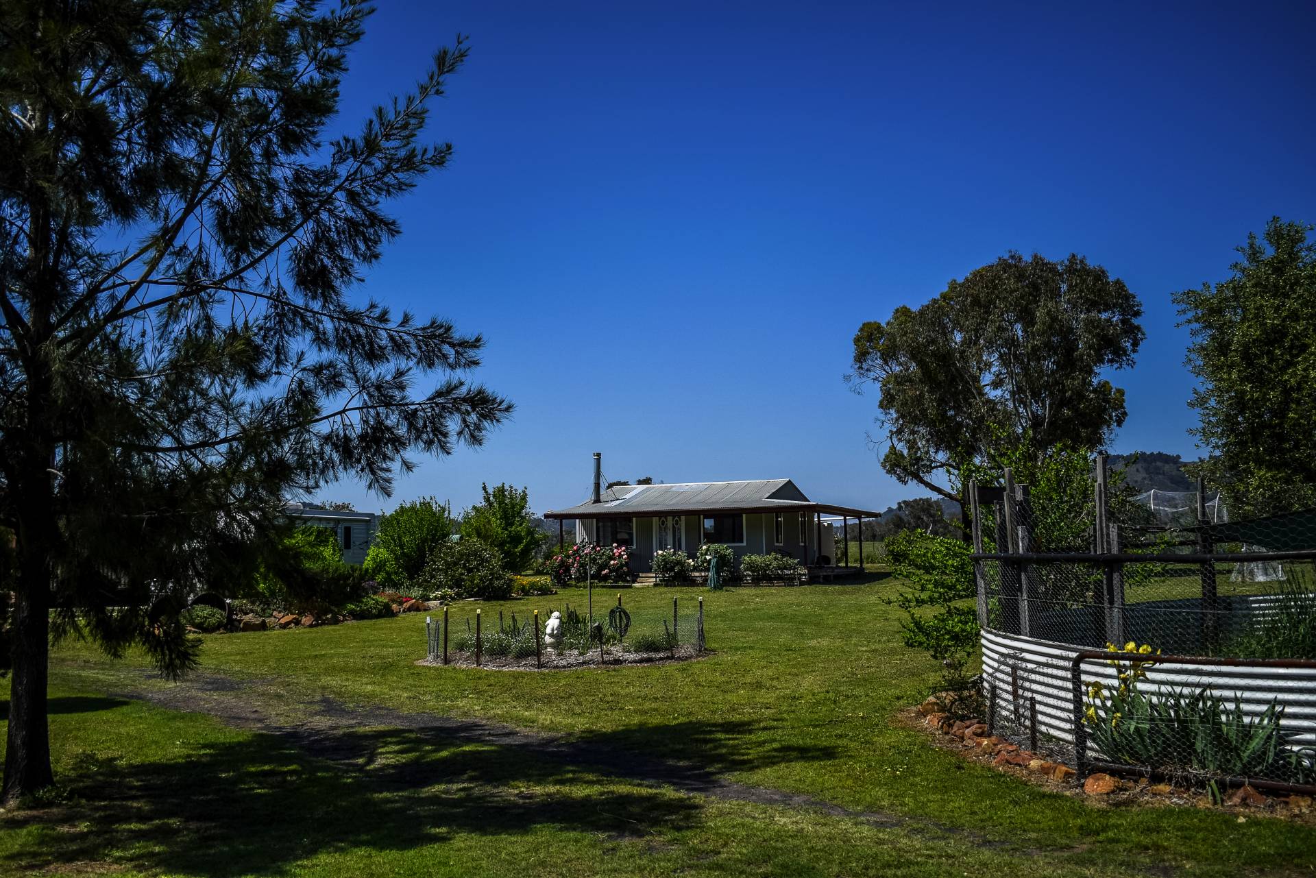 The 3 Br home has double insulation in roof with Rockwool and pink bats and a roof ventilator, has quality fixtures and fittings including built-ins in all 3 bedrooms with plantation shutters on windows. Ceiling fans in each bedroom and lounge, which is also air conditioned. Heat is ducted to lounge and front bedroom hallway by fan for winter months. The Garage and carport will park 4 cars and fitted to the roof is a 4Kw battery solar system that is wired back to the grid currently returning $0.11 per Kw. Rain water for the property is caught from roof and guttering to 2 x 20,000 gal. tanks plus a 5,000 gal. poly tank. The bore can be turned on at the workshop by flicking a switch or leaving on on pressure control and will water garden and fill dams when required. The house yard contains raised garden beds in the vege patch and an established orchard including Pear, Cherry, Peach, Nectarine, Apple, Plum, Persimmon, Alder berry, Orange, Lemon, Almond, Olive, Apricot, Crab apple, trees. Additional native trees line the garden for shade and protection creating a hive of productivity.