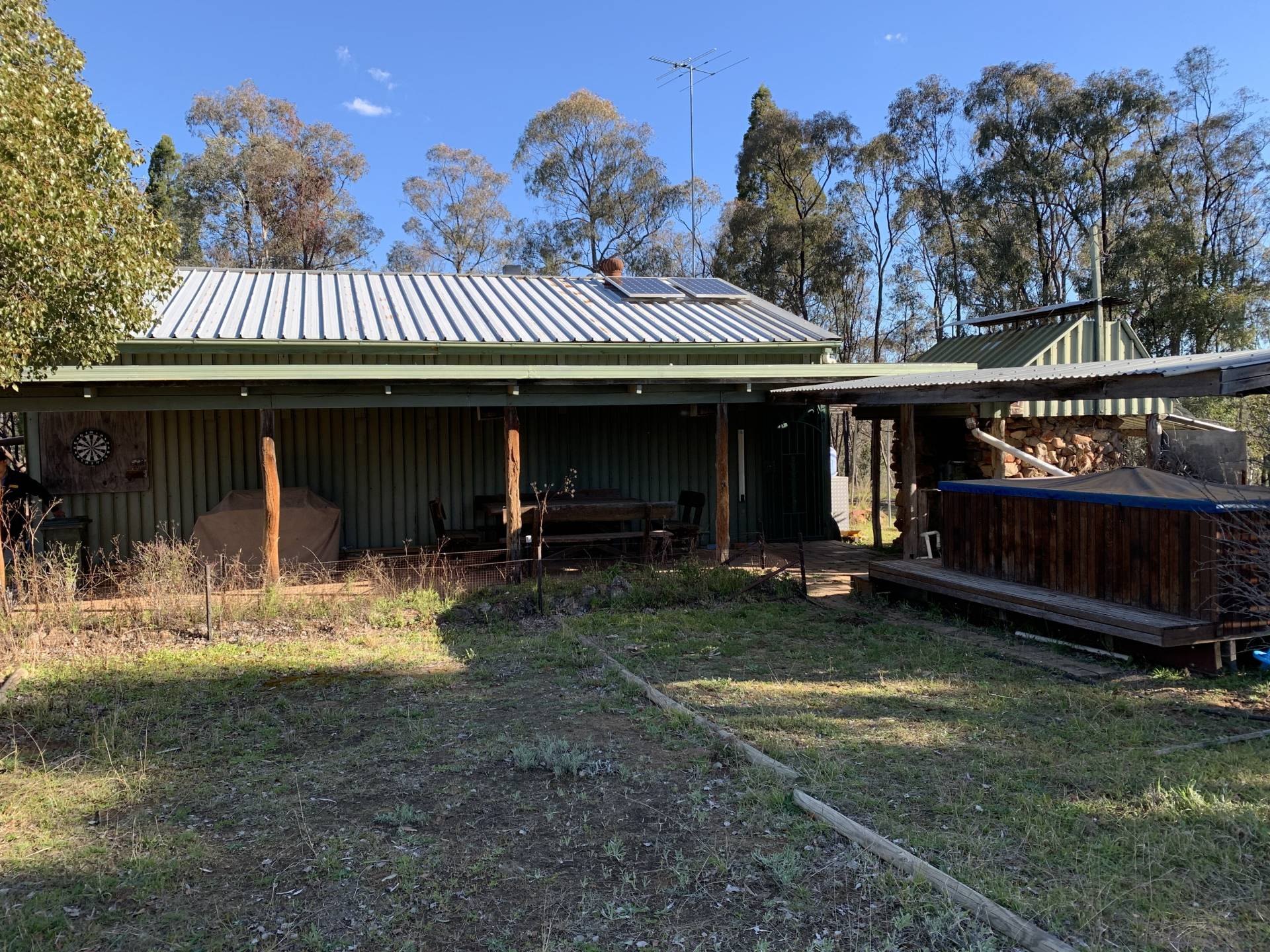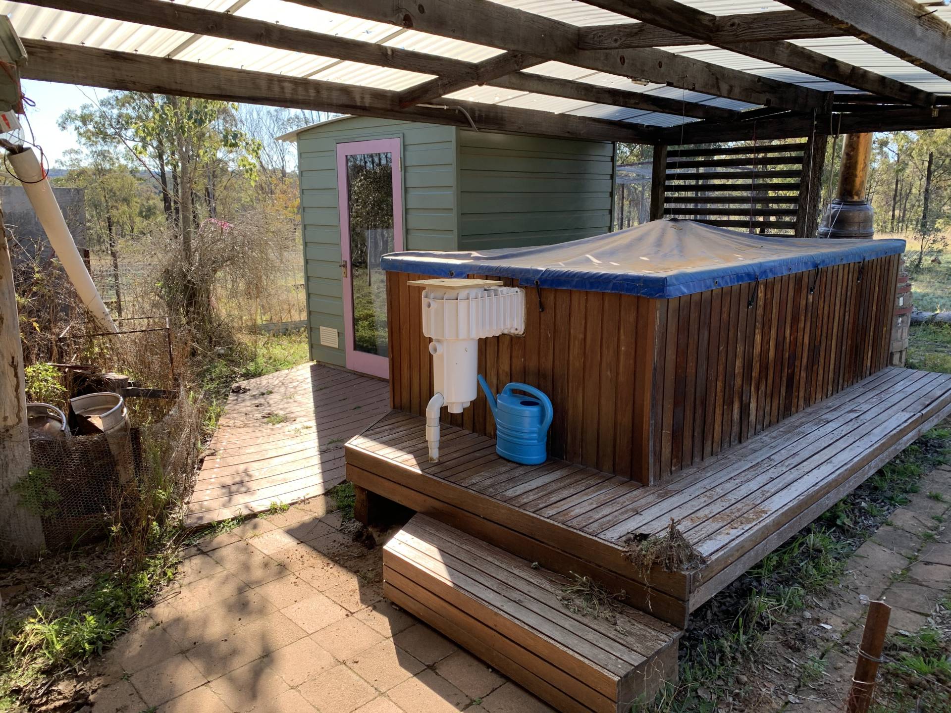 28 Km on Glen Alice road from Rylstone is a wonderful 100 acre property with a setup for the lifestyle property like no other. It has a large shed that has been built for the perfect weekend stay with the family and friends. Another 7mx9m workshop and storage shed is connected. The living shed has a mezzanine floor that will sleep at least 8 people and has 2 bedrooms for privacy. The huge open fire down stairs is well constructed and will warm the whole shed and dining/kitchen area. Just around the corner is the outdoor dining area with pizza oven and barbeque. Just near there is the hot tub and sauna. All very well done and low maintenance. Power to the shed is by diesel generator, wired to the shed. It is well designed with a small solar back up set of lights. A bathroom and toilet that are connected to a septic and rubble drain, along with solar hot water and plenty of water storage rounds this property of the be one of the best weekenders about.