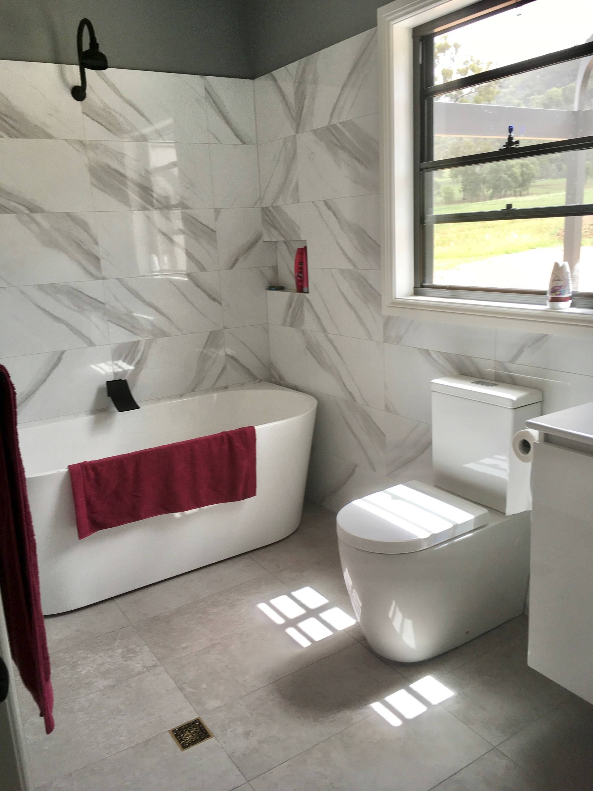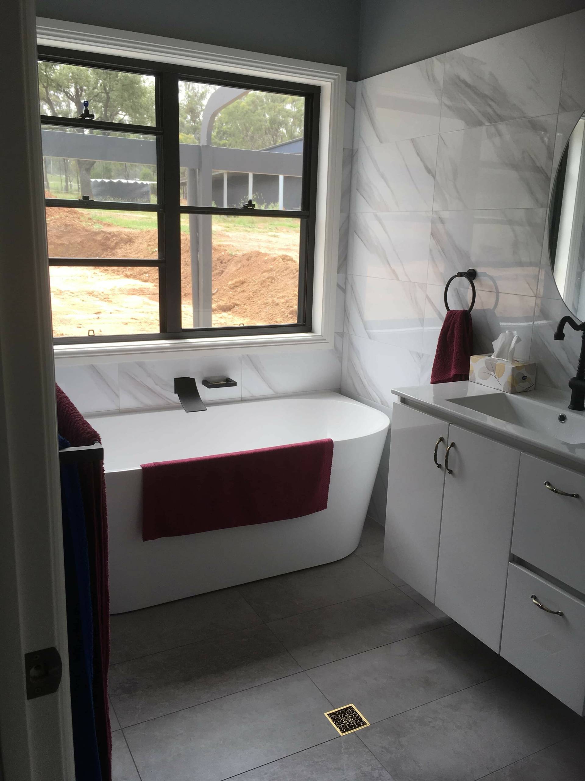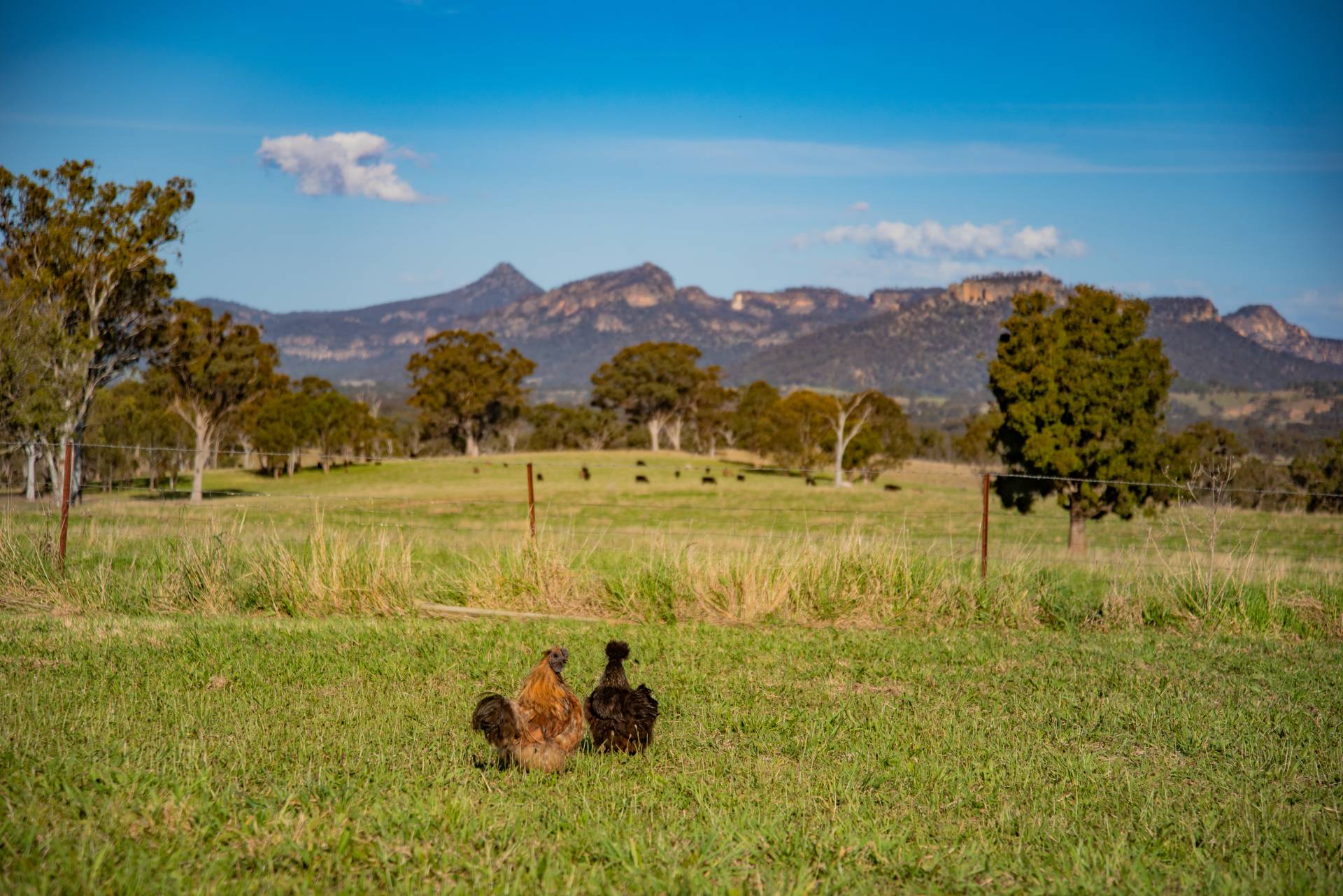 The modern kitchen and dining look out over the surrounding landscape through large glass windows and sliding doors. Wrap around verandahs allow for under cover dining or relaxation highlighting the view of the surrounding rural vista of grazing land and mountain escarpment backdrops of the Capertee Valley.