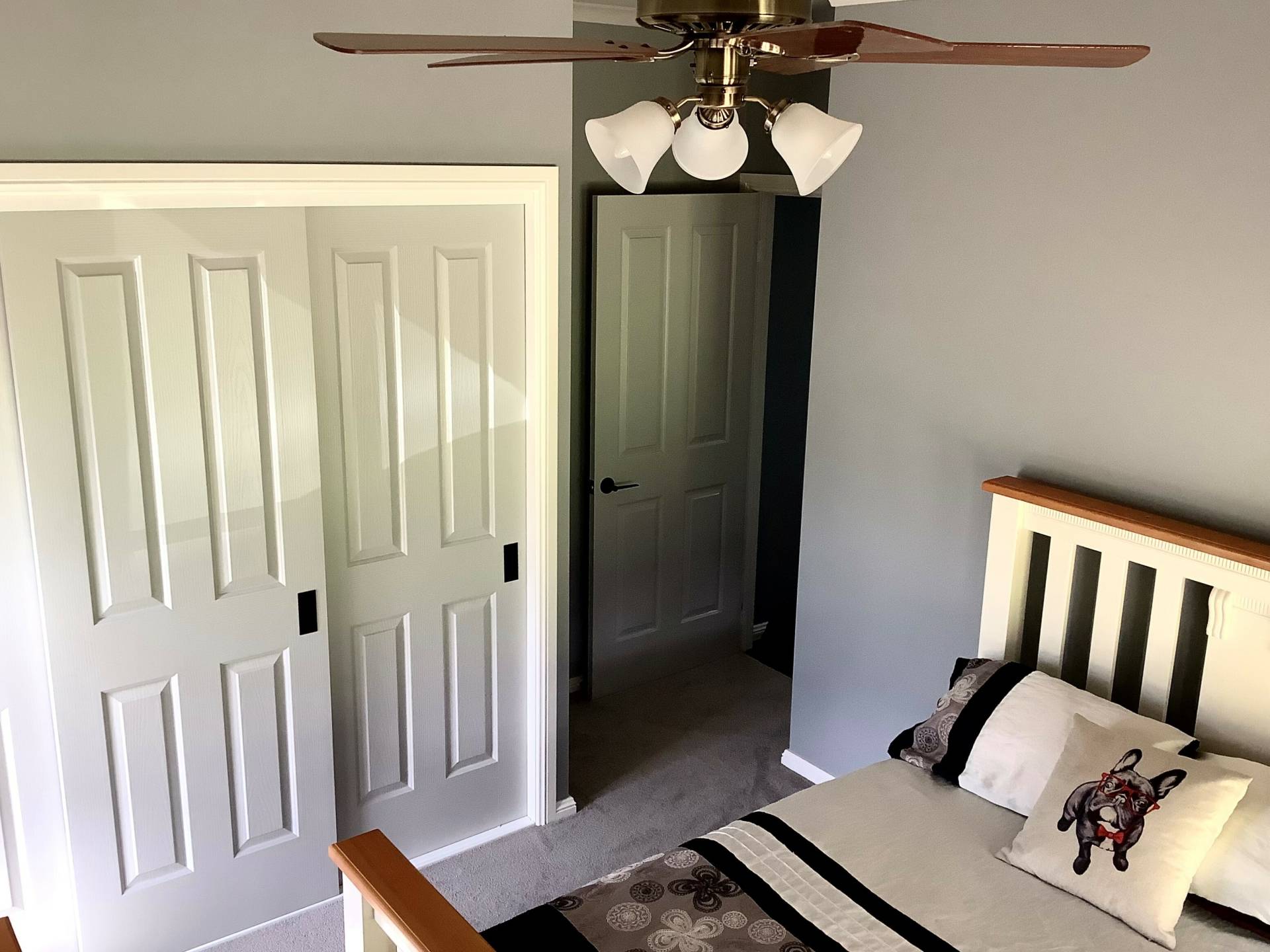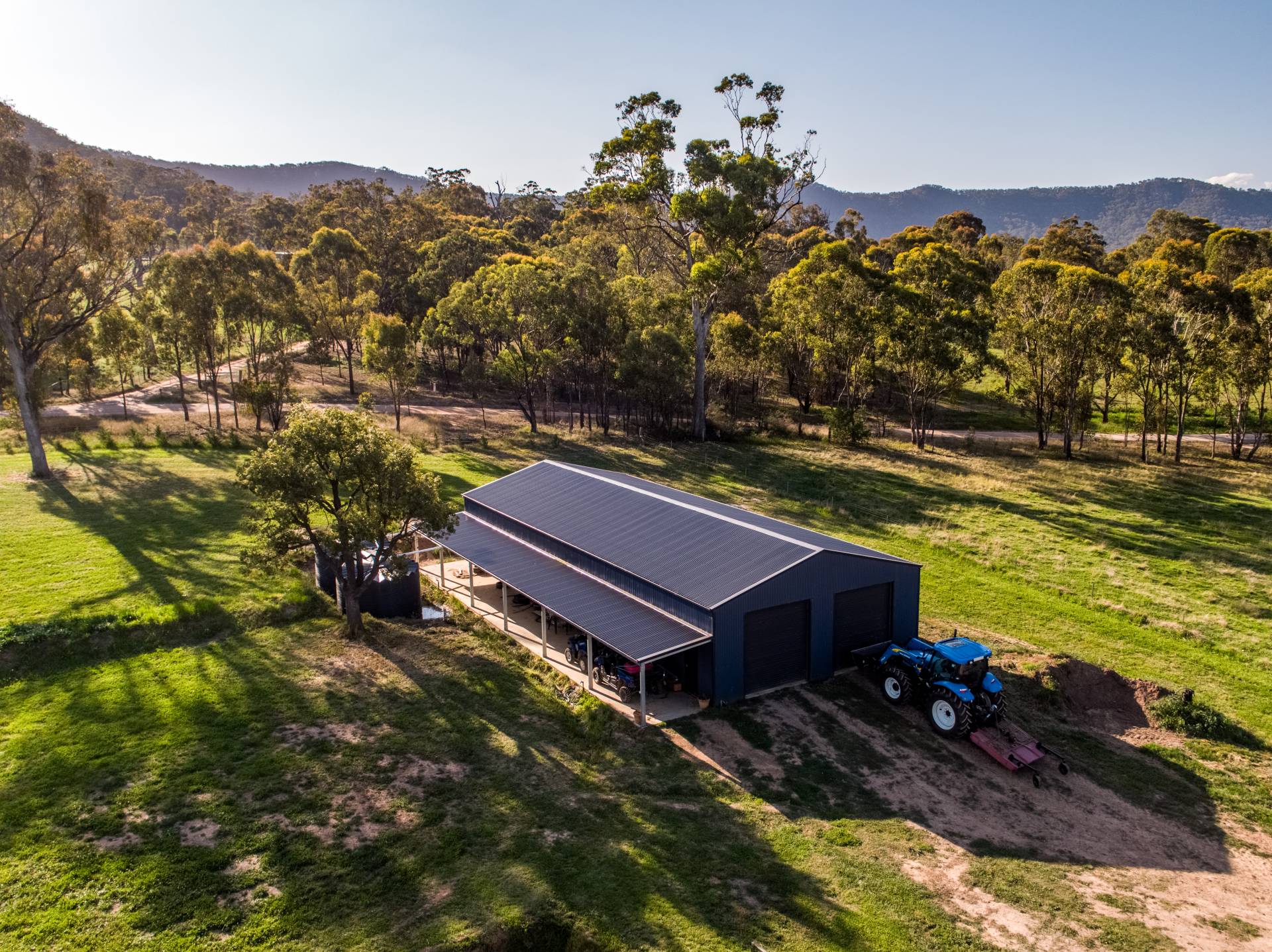 A huge shed being a mains powered is a Colourbond 10x24M shed plus a 3m awning, all with cement floor. 2 x High roller doors for caravan of large machinery access and plumbed to 2 x 27,500 litre tanks and Calpeda pump for Garden water