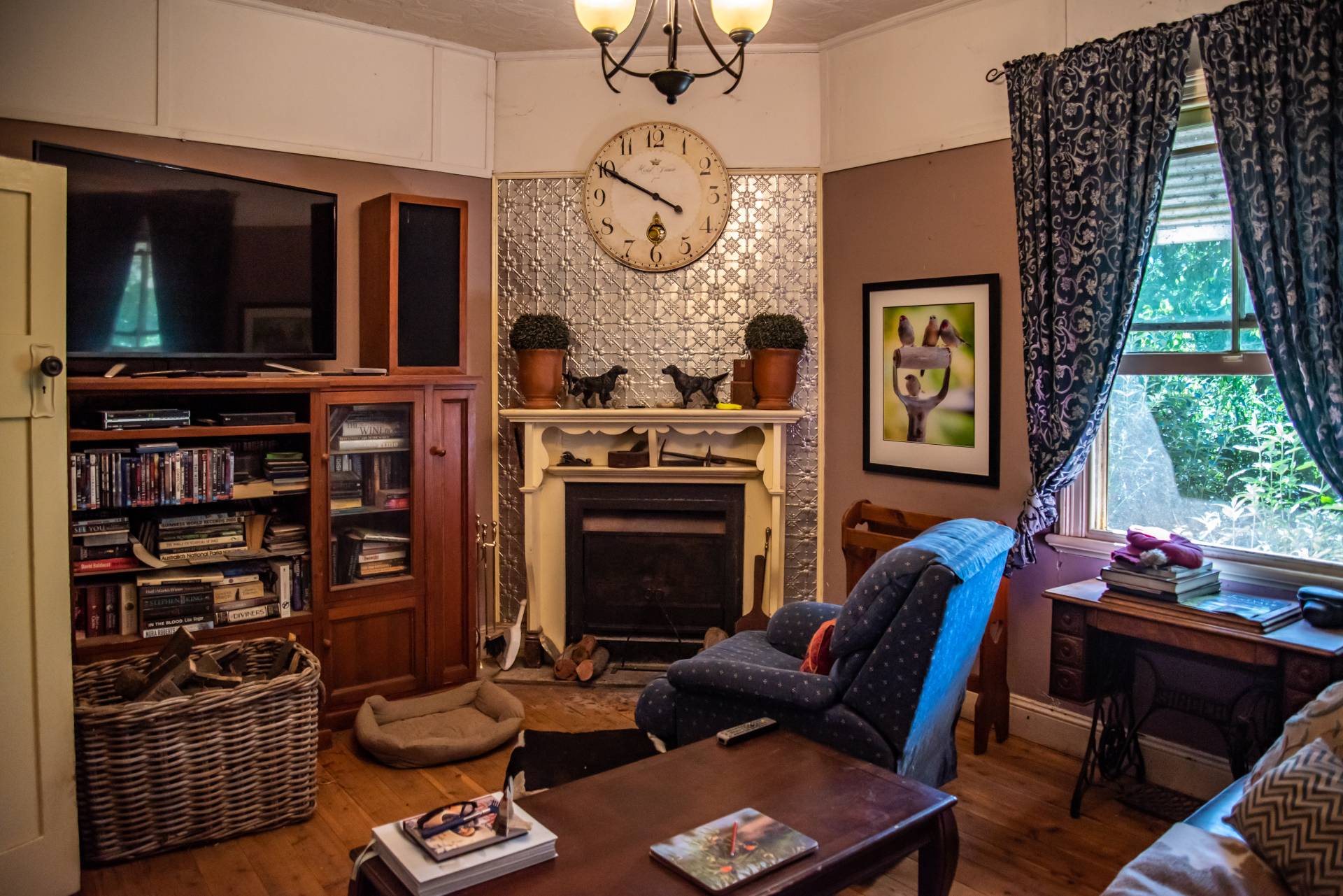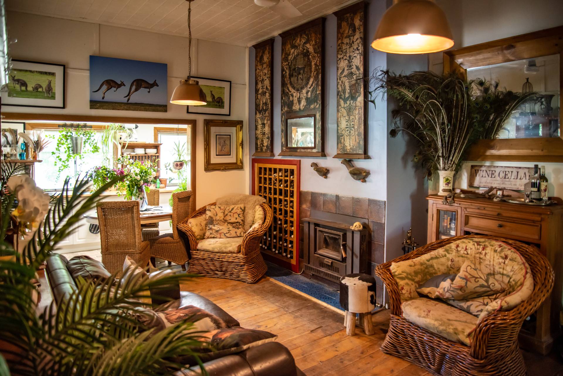 Comfortable living area with combustion wood fireplace and reverse cycle air conditioning