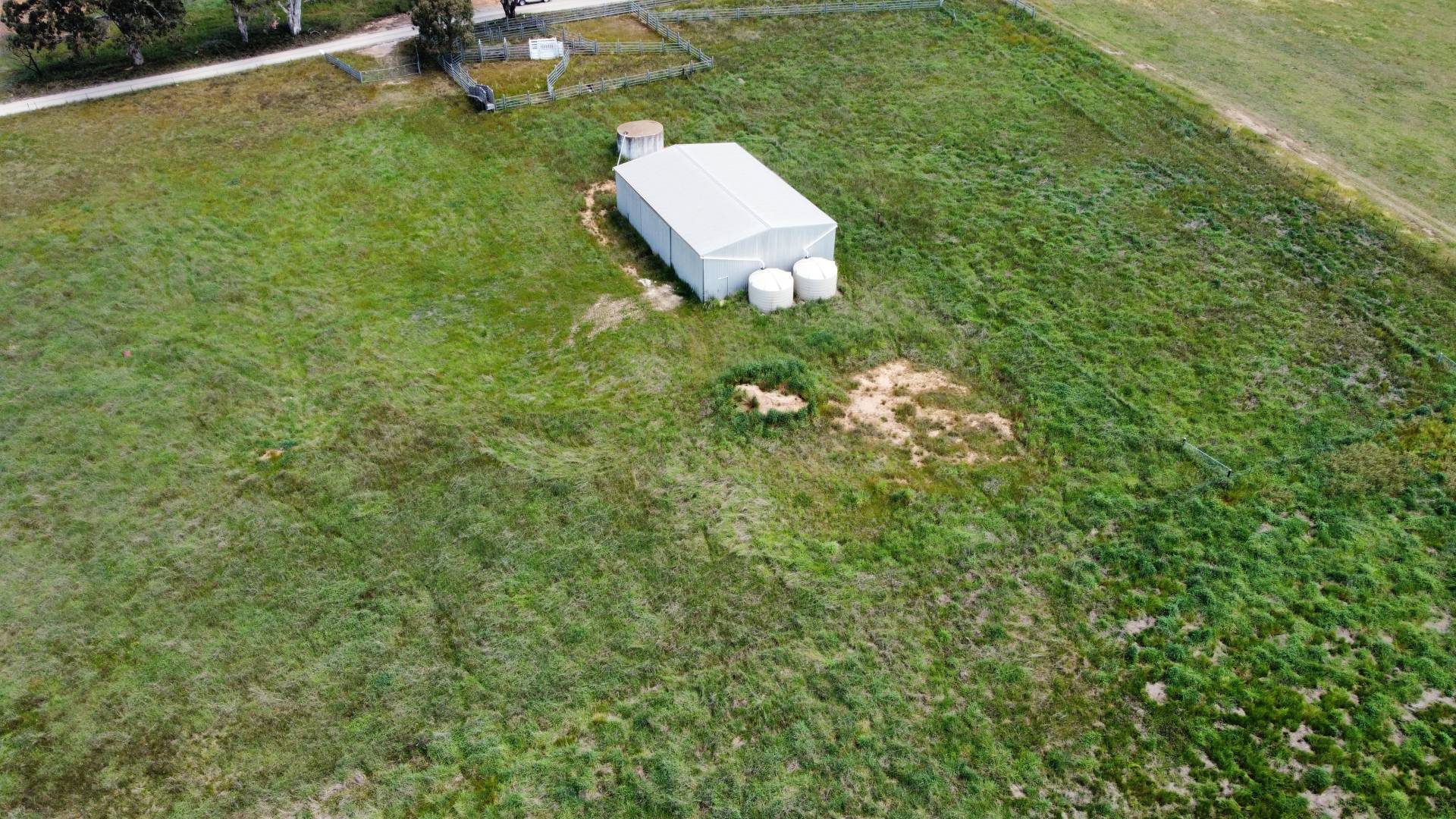 Rainwater is collected from the roof of the 18mX12m iron shed into 3 tanks totaling approximately 15,000 gal. The shed is lockable and has been used for hay and machinery storage.