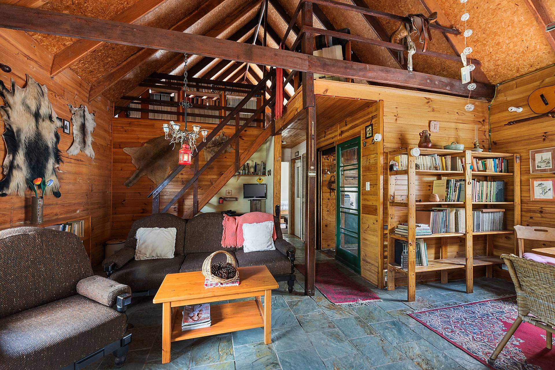 Cosy Atmosphere: Warm up in the inviting living area featuring a slow-combustion fireplace.