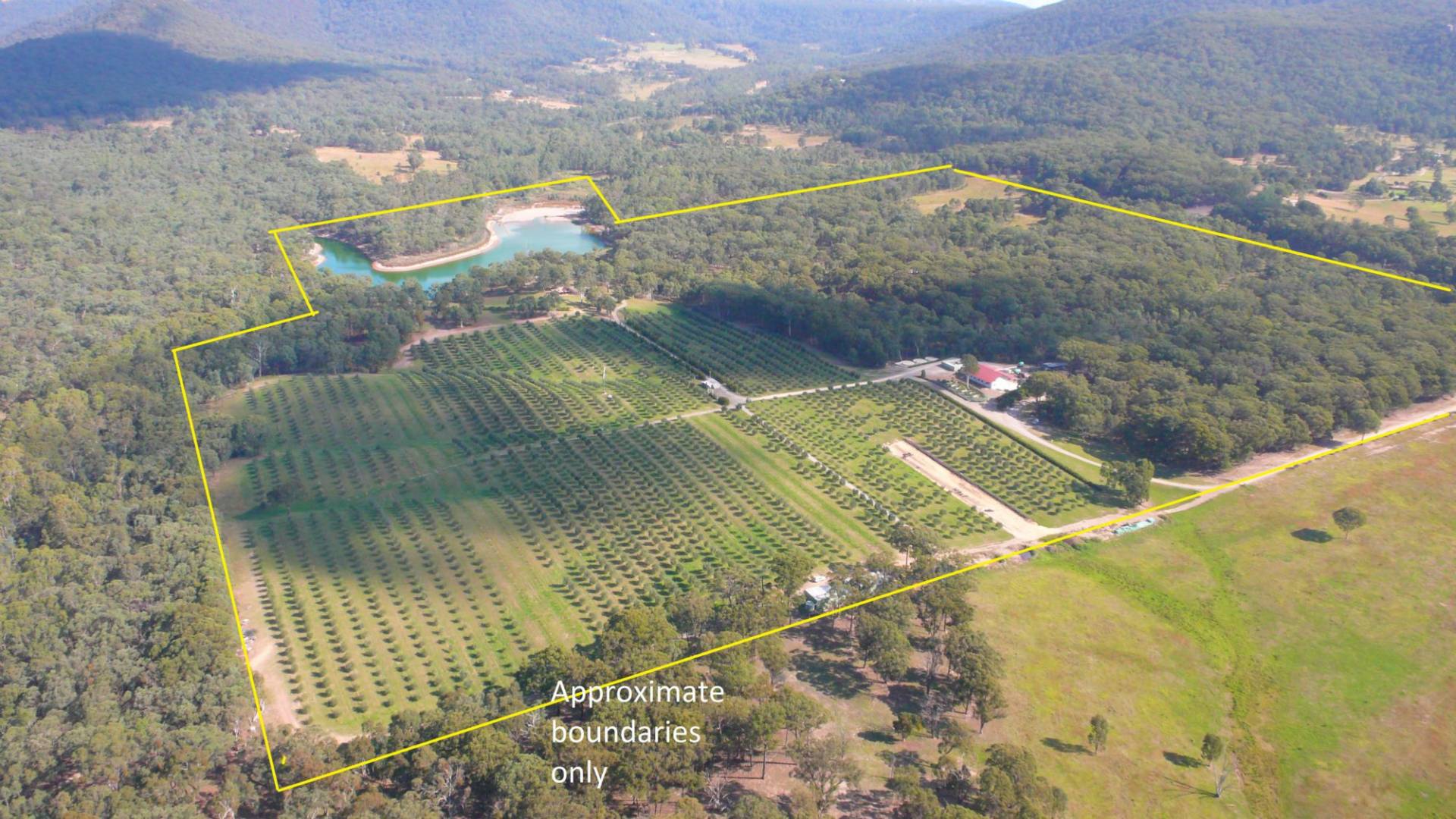 The 161 acre property has an exclusive 18 acre lake nestled into the base of stunning sandstone ranges close to the well serviced towns of Rylstone and Kandos with an established olive grove and extraordinary infrastructure.