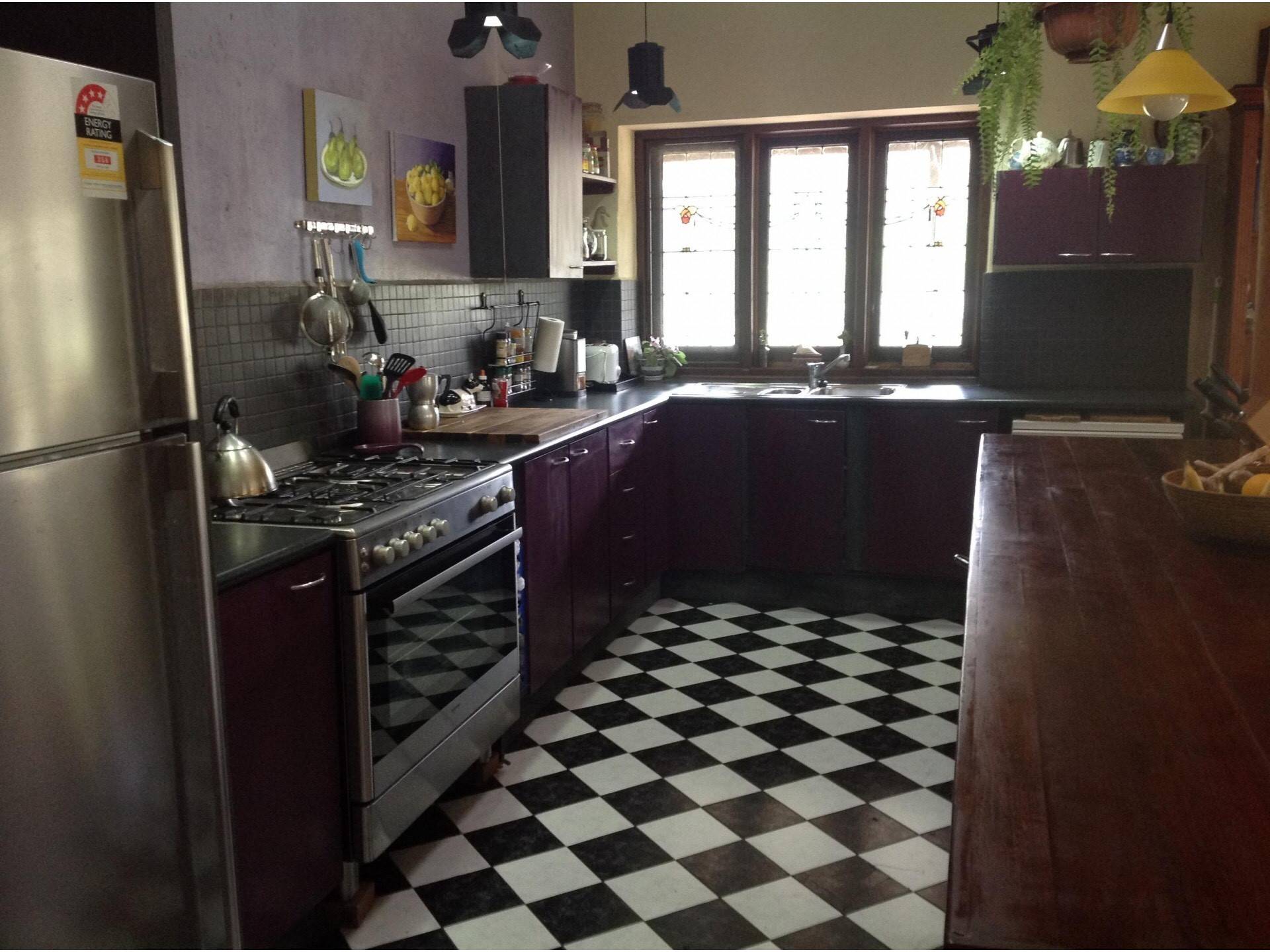 The house contains a huge open lounge, dining and kitchen area, with three very large bedrooms, a huge bathroom, separate toilet and internal laundry. The house has 10 ft high ceilings and beautiful timberwork and leadlight windows throughout. It is surrounded by a thriving native garden.