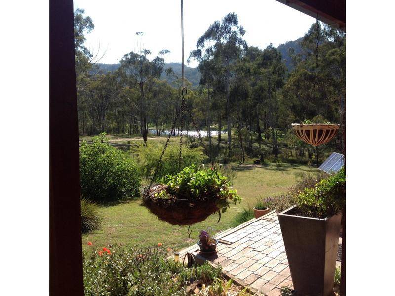 Wombat Gully adjoins the Wollemi National Park and has a Conservation Agreement over 200 acres, leaving you 40 acres to hobby farm using the many dams on the property, or run your own computer business via satellite broadband, or just sit back and bird watch from the verandah. Over 100 species of birds have been identified, and the native vegetation is as pristine as it gets. Views from any part of the wide surrounding verandah are spectacular.