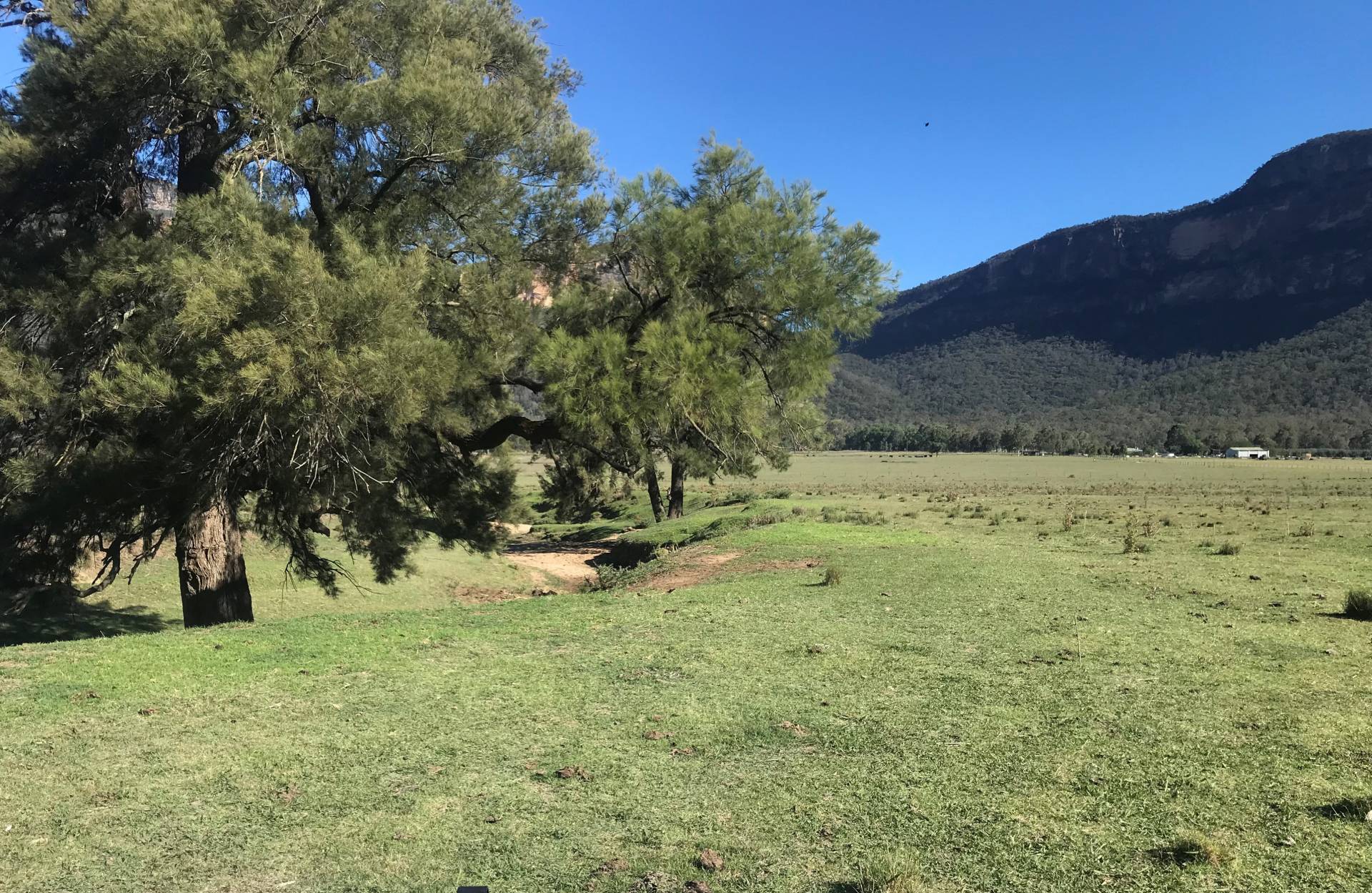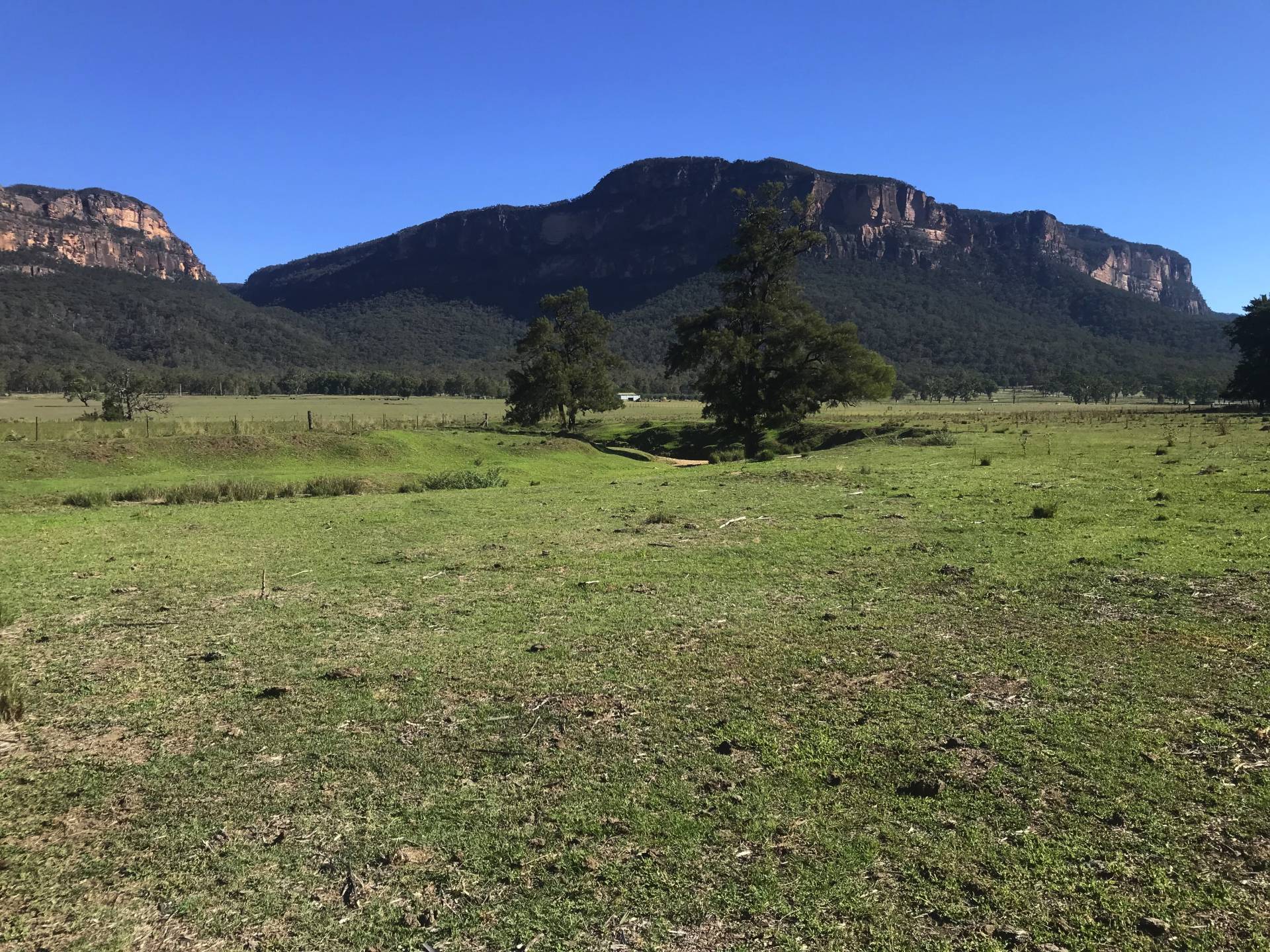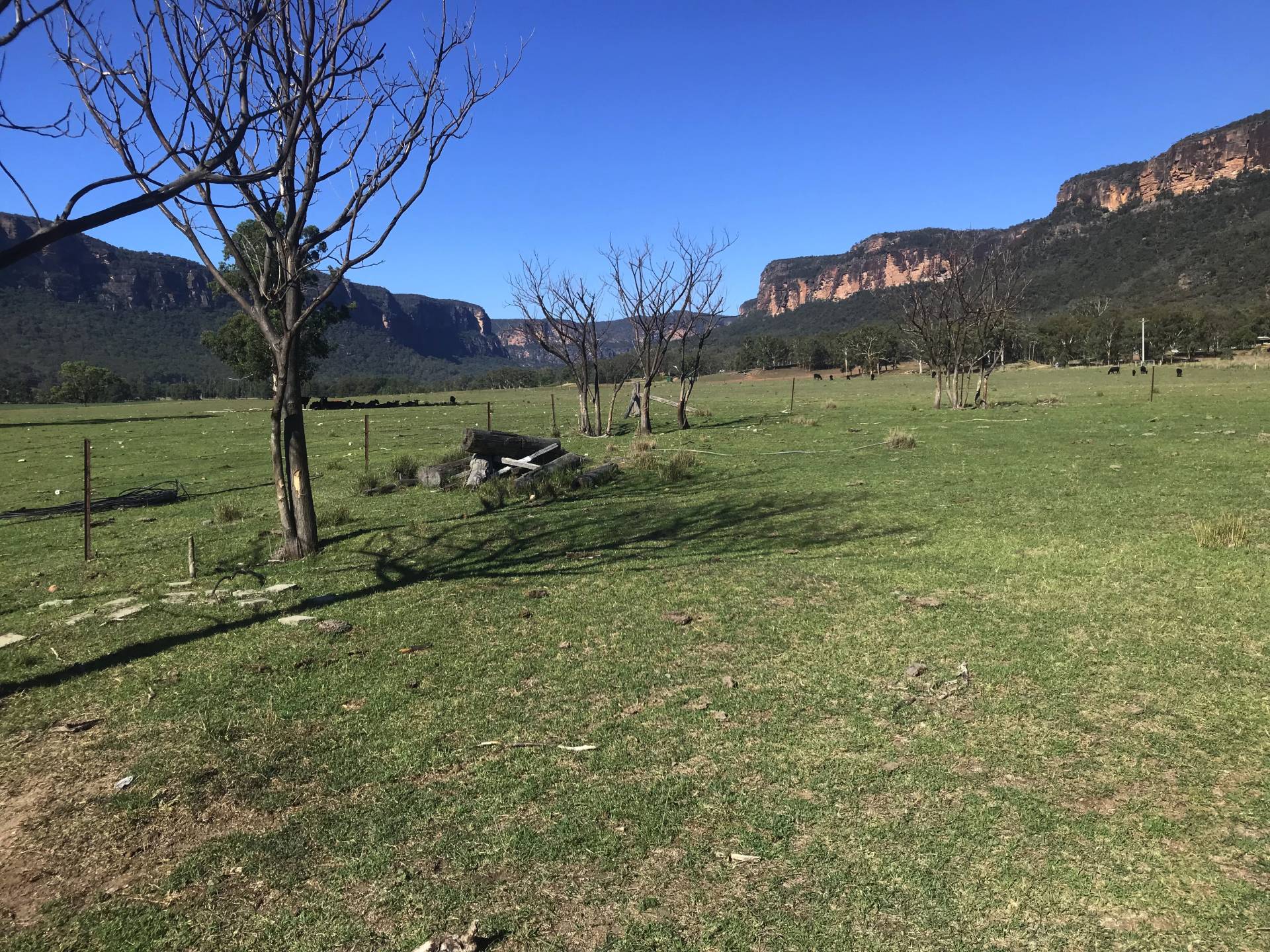 102 The Gullies Road in Glen Davis is a unique 48.5 acre property with current dwelling entitlement and a 10meg irrigation, stock and domestic bore license. It is set beneath dramatic sandstone escarpments in the Capertee valley on the edge of the small historic township of Glen Davis. The Capertee river runs along the boundary and is dotted with beautiful shade trees and sandy banks. The block has great grazing/hay or lucerne farm potential and is principally alluvial fertile soil types. The equipped solar pumping bore currently pumps to a 20,000 gal. tank and is reticulated to troughs for stock water. It is fenced into two main paddocks with a container shed and small rainwater tank. Approximately 3 to 3.5hrs from Sydney and 1.5hrs from Lithgow.